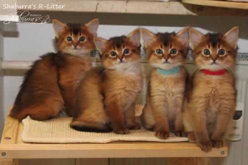 Geboren am 11.10.2023Eltern: Shaburra`s Fienchen von den Schnuffelsx Olaf vom ZankelsteinAlle Babys sind SomalisRomeoSomali - wildfarben - männlich (ausgezogen)RapunzelSomali - wildfarben- weiblich (ausgezogen)RonjaSomali - wildfarben- weiblich (ausgezogen)RosinchenSomali - wildfarben- weiblich (ausgezogen)